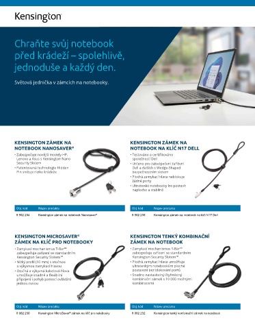 8 902 234 Kensington zámek na notebook Nanosaver ® 8 902 235 Kensington zámek na notebook na klíč N17 Dell