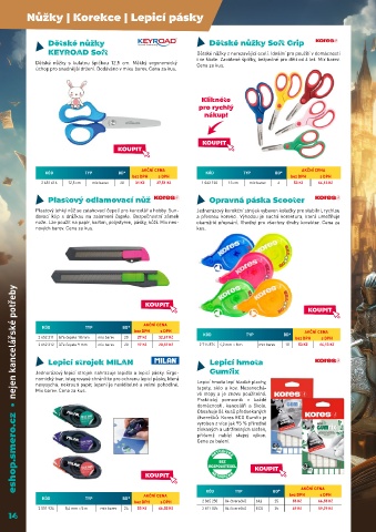davací klip s drážkou na zalomení čepele. Bezpečnostní zámek a přesnou korekci. Výhodou je suchá korektura, která umožňuje