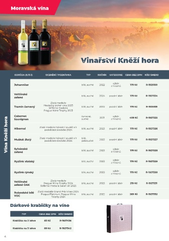 Vína Kněží hora Hibernal Zlatá medaile Národní soutěž vín bílé, suché 2023 pozdní sběr 179 Kč R-1927326 Sylvánské zelené bílé, suché 2024 pozdní sběr 179 Kč R-1927338