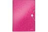 Mapa odkládací A4 Leitz WOW 253, tříklopá, celoplastová, s gumičkou, růžová
