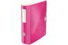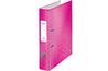 Pořadač pákový A4 Leitz 180° WOW, polypropylenový, mobilní, hřbet 8,2 cm, s gumičkou, růžový