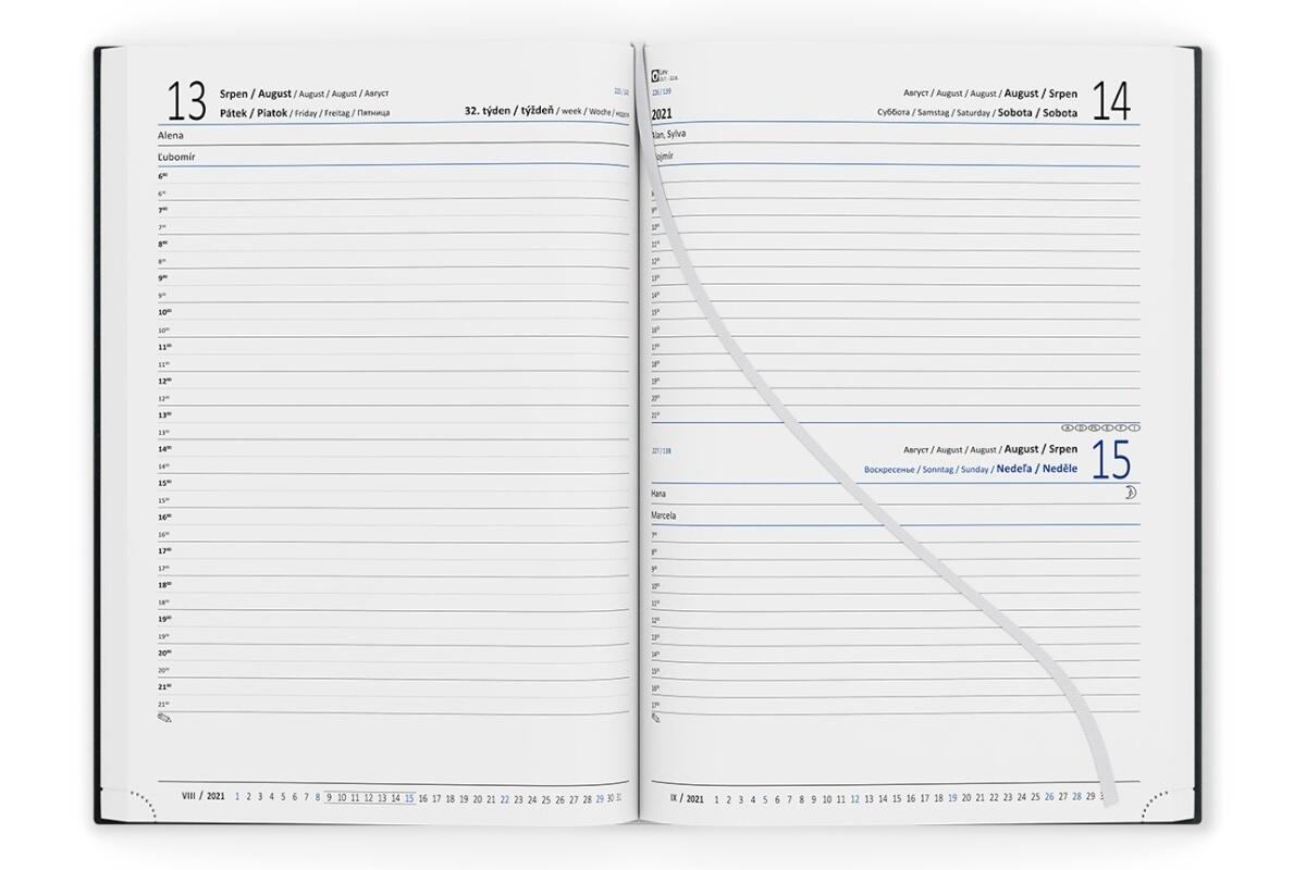- denní diář v bordó barvě z jemné vivelly ve formátu A5