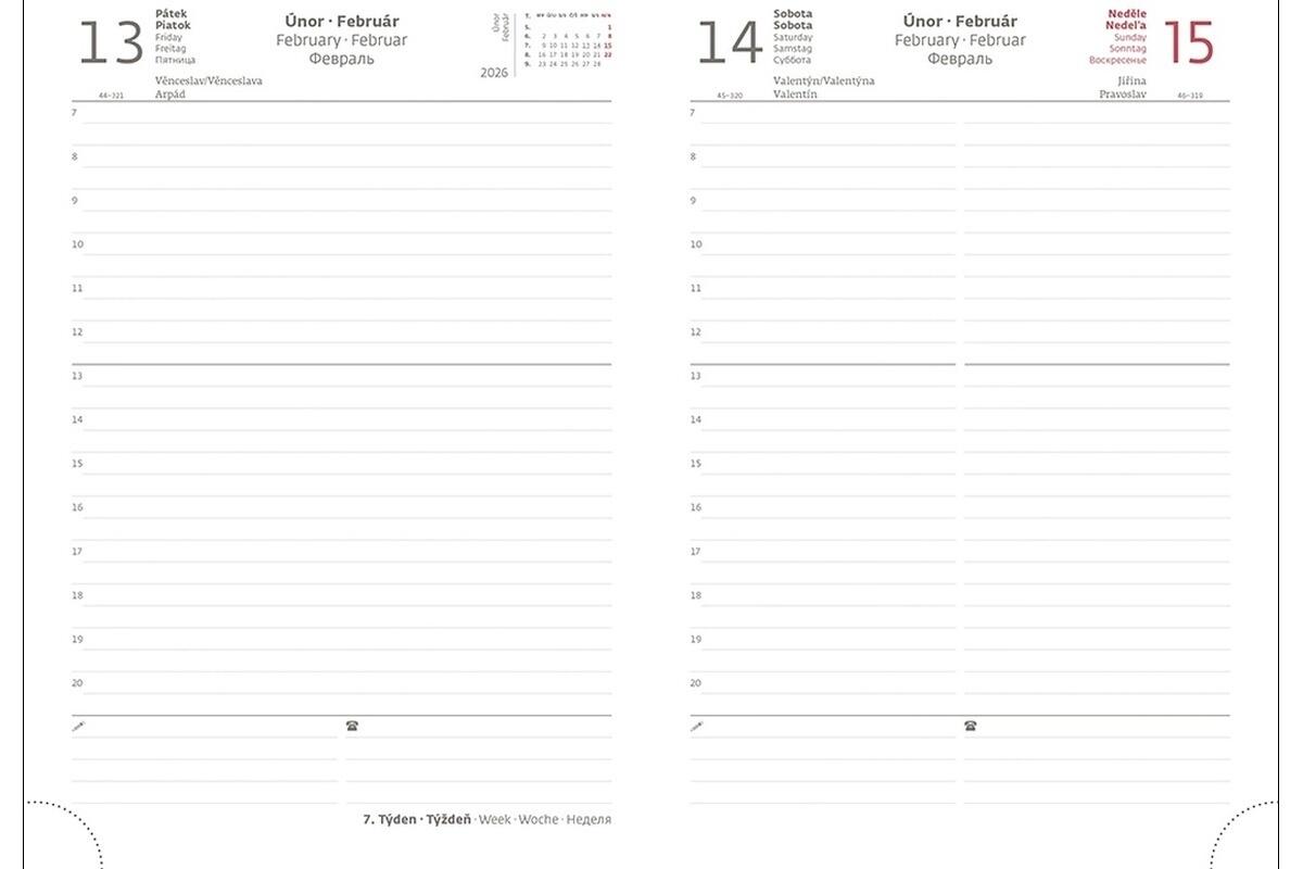 - desky diáře jsou zhotoveny z matného materiálu na bázi zušlechtěného papíru