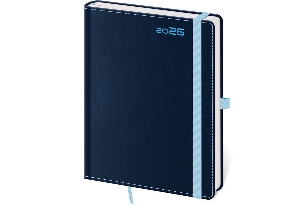 Diář denní A5 Double Blue, s gumičkou, modrý