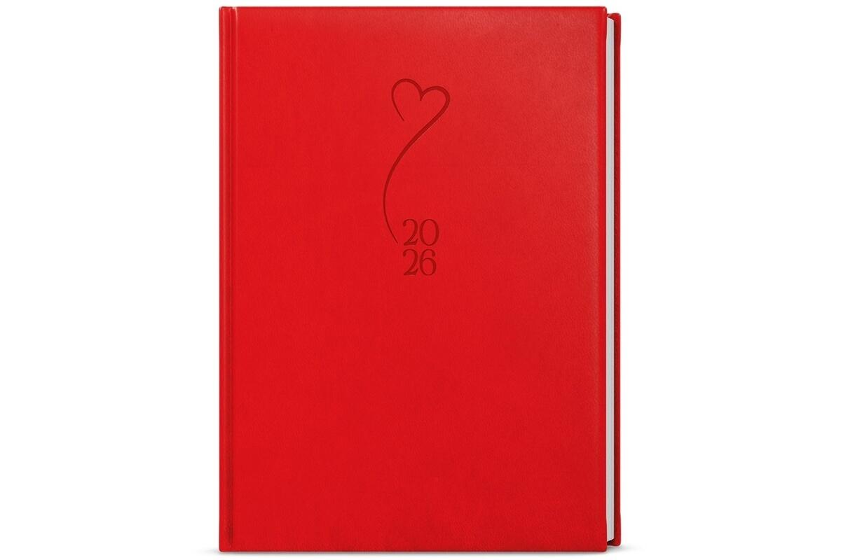 Diář týdenní A5 Oskar, Vivella s ražbou, srdce, červený