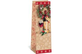Taška dárková, 11x10x36 cm, na víno, papírová, vánoční, natur, design 0059