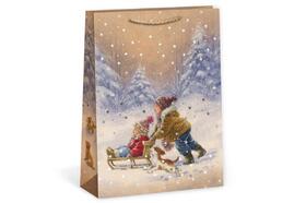 Taška dárková, 31x12x41,5 cm, papírová, vánoční, natur, design 0067