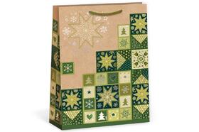 Taška dárková, 18,3x10x24,3 cm, papírová, vánoční, natur, design 0068