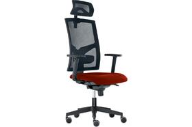 Židle kancelářská Game šéf, T-Synchro, hlavová opěrka 3D, područky P54, posuv sedáku, kříž černý Loop 640 mm, kolečka pogumovaná, sedák 4011 červený, opěrák a opěrka černá síť