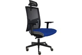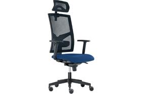 Židle kancelářská Game šéf, T-Synchro, hlavová opěrka 3D, područky P44, posuv sedáku, kříž černý Loop 640 mm, kolečka pogumovaná, sedák 6071 modrý, opěrák a opěrka černá síť