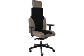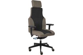 Židle kancelářská Ergo 24 SYNCHRO, hlavová opěrka 3D, područky P76 5D, posuv sedáku, kříž hliníkový černý 700 mm, kolečka pogumovaná, sedák a opěrák 8010 šedý, opěrka a bok sedáku 1008 hnědá