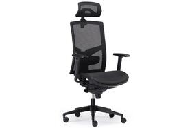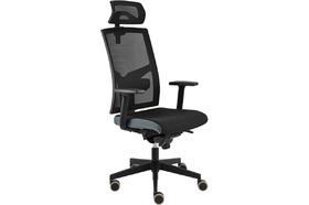 Židle kancelářská Game T-SYNCHRO, hlavová opěrka 3D, bederní opěrka, područky, posuv sedáku, kříž černý Loop 640 mm, černá síť