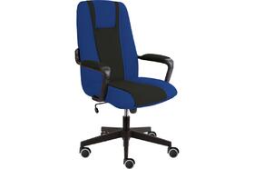 Židle kancelářská York SYNCHRO, hlavová opěrka, bederní opěrka, područky P41, kříž černý Loop 640 mm, kolečka pogumovaná, sedák Fill 82 modrý, opěrák a opěrka černá síť