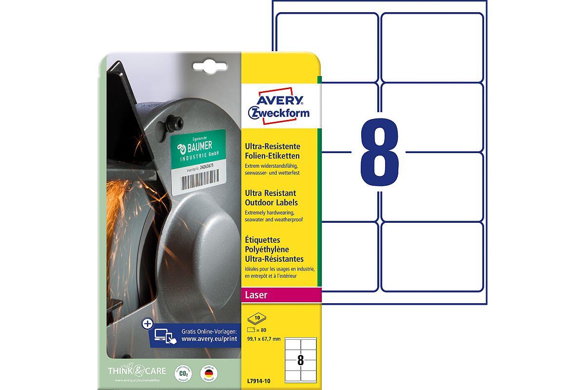 Etikety ultra odolné Avery Zweckform, 99,1x67,7 mm, arch A4, 10 listů, bílé