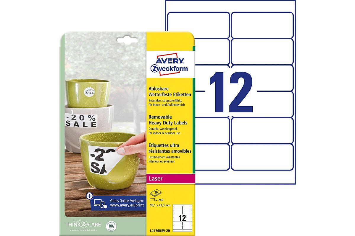 | 1313024 | Etikety velmi odolné Avery Zweckform, 99,1 x 42,3 mm, arch A4, snímatelné, 20 listů, bílé |