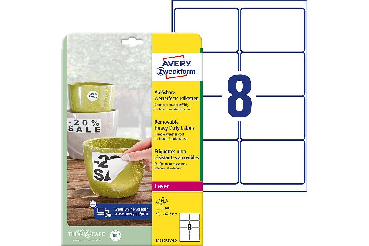 Etikety velmi odolné Avery Zweckform, arch A4, snímatelné, 20 listů, bílé