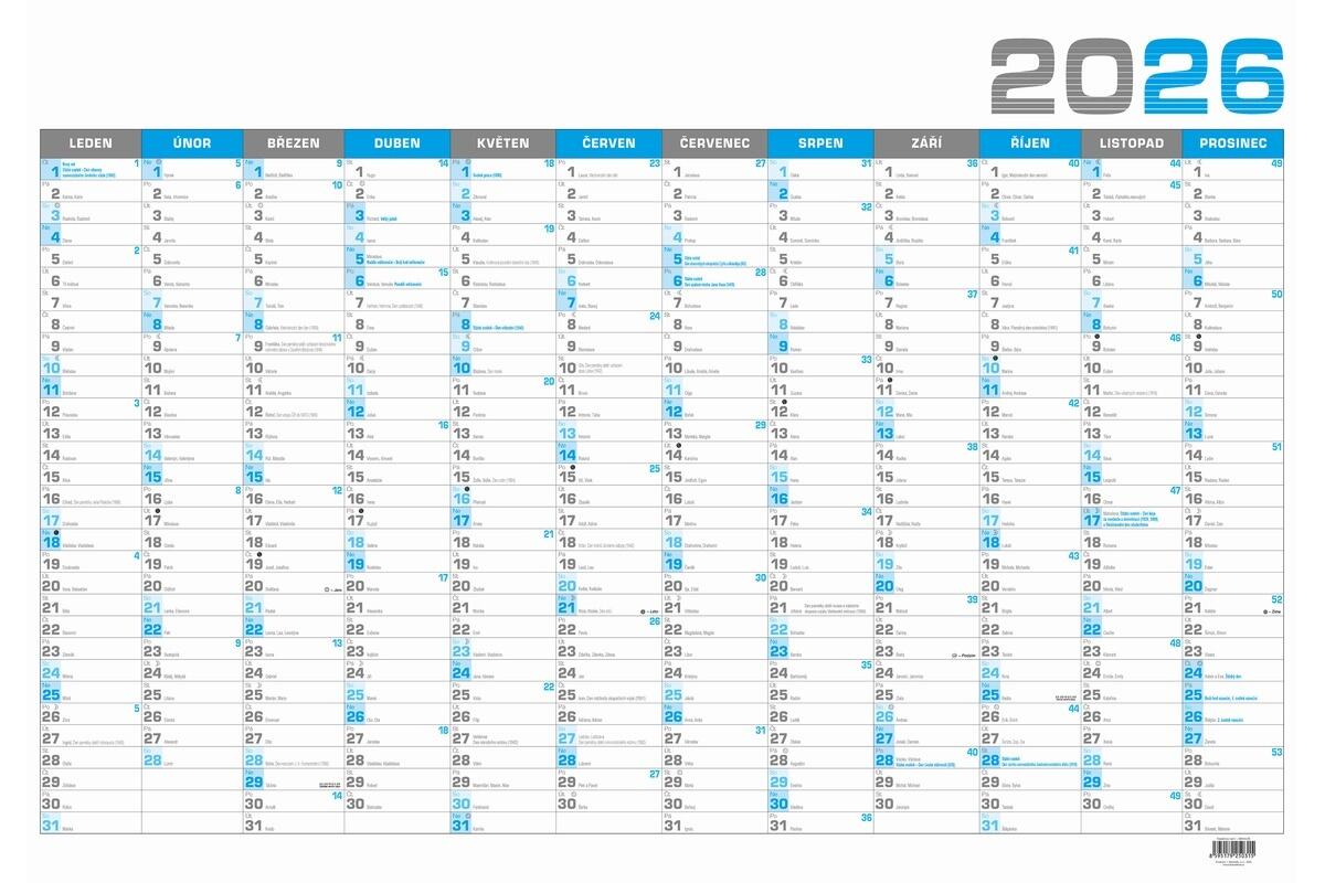 Kalendář nástěnný B1 roční, 96,4 x 67 cm, modrý
