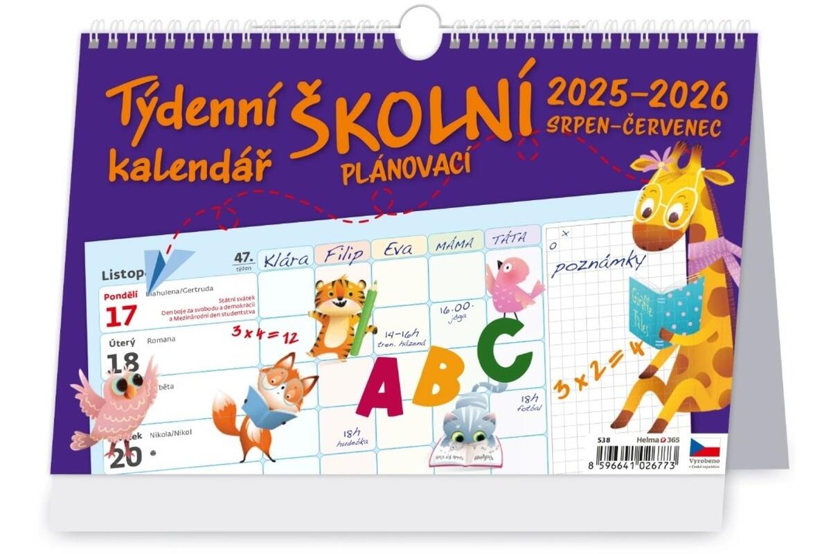 Kalendář stolní Plánovací týdenní školní, 24 x 16 cm