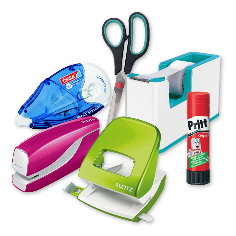 Nedílnou součástí každého kancelářského stolu jsou kancelářské nezbytnosti. I váš stůl dokážeme do detailů sladit s kanceláří. Ať už ji máte zařízenou v jemných pastelových tónech se spoustou květin, nebo je naopak minimalisticky střižena se spoustou hi-tech vychytávek, u nás si vyberete přesně tu sešívačku, která podtrhne krásu a účelnost vašeho pracovního prostoru. Barevně vám s ní sladíme i děrovačku a k tomu můžete vybírat i z naší široké nabídky lepidel, nůžek, kancelářských sponek, gumiček i špendlíků.