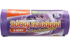 Sáček na odpad s vůní Vipor, 59 x 80 cm, 60 l, 21 mikronů, zavazovací, LDPE, 16 ks, levandule, fialový