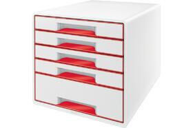 Box zásuvkový A4 Leitz WOW Cube, plastový, 5 zásuvek, bílo-červený