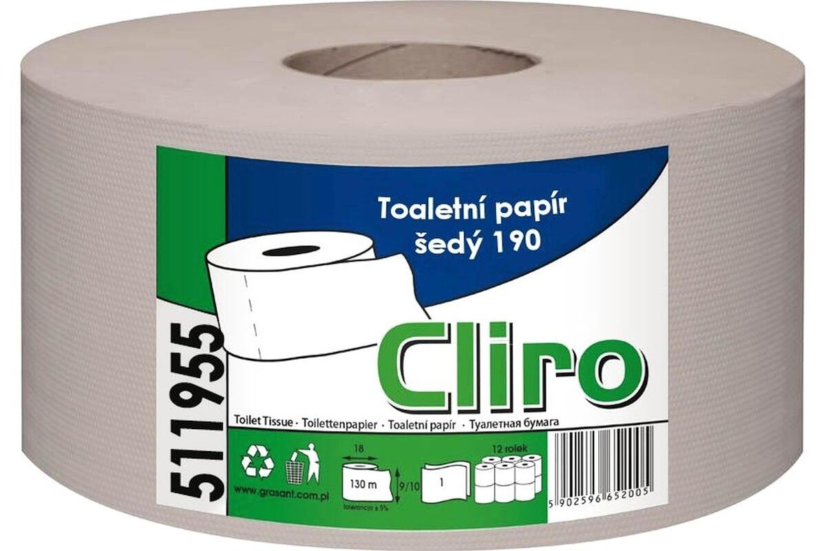 Papír toaletní Cliro Jumbo, 1vrstvý, recykl, ø 19 cm, 130 m, 6 ks, šedý