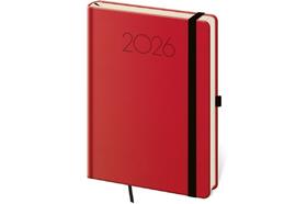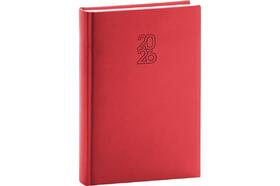 Diář denní A5 New Praga, koženka, s gumičkou, červený