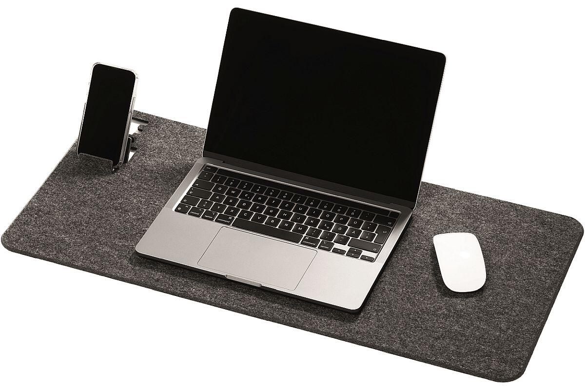 - podložka na stůl ze 60 % recyklované PET plsti s výklopným držákem na mobilní telefon