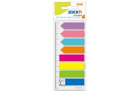Záložka samolepicí Stick'n by Hopax, 45 x 12 mm + 42 x 12 mm, plastová, šipka + proužek, s pravítkem, 8 x 25 lístků, neonový mix