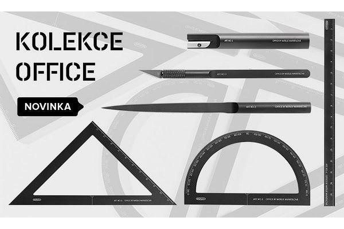 • kolekce zahrnuje: ořezávátko, dopisní nůž, skalpel, pravítko, úhloměr a pravítko trojúhelník