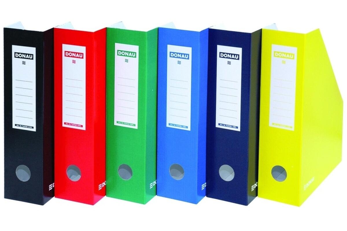 Stojan na časopisy A4 Donau, hřbet 8 cm, lepenka, žlutý