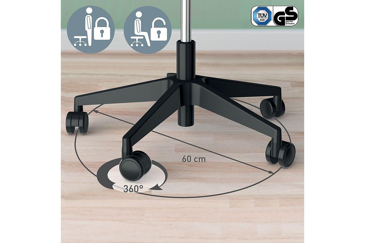 - 5 koleček vhodných pro všechny typy podlah, s automatickou aretací při nečinnosti