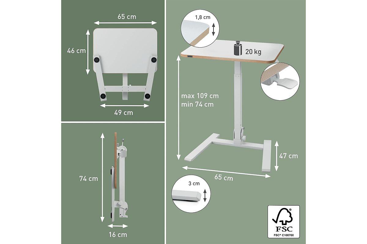 Stůl Leitz Ergo, 46 x 74 x 65 cm, výškově nastavitelný, sklopitelný, bílý