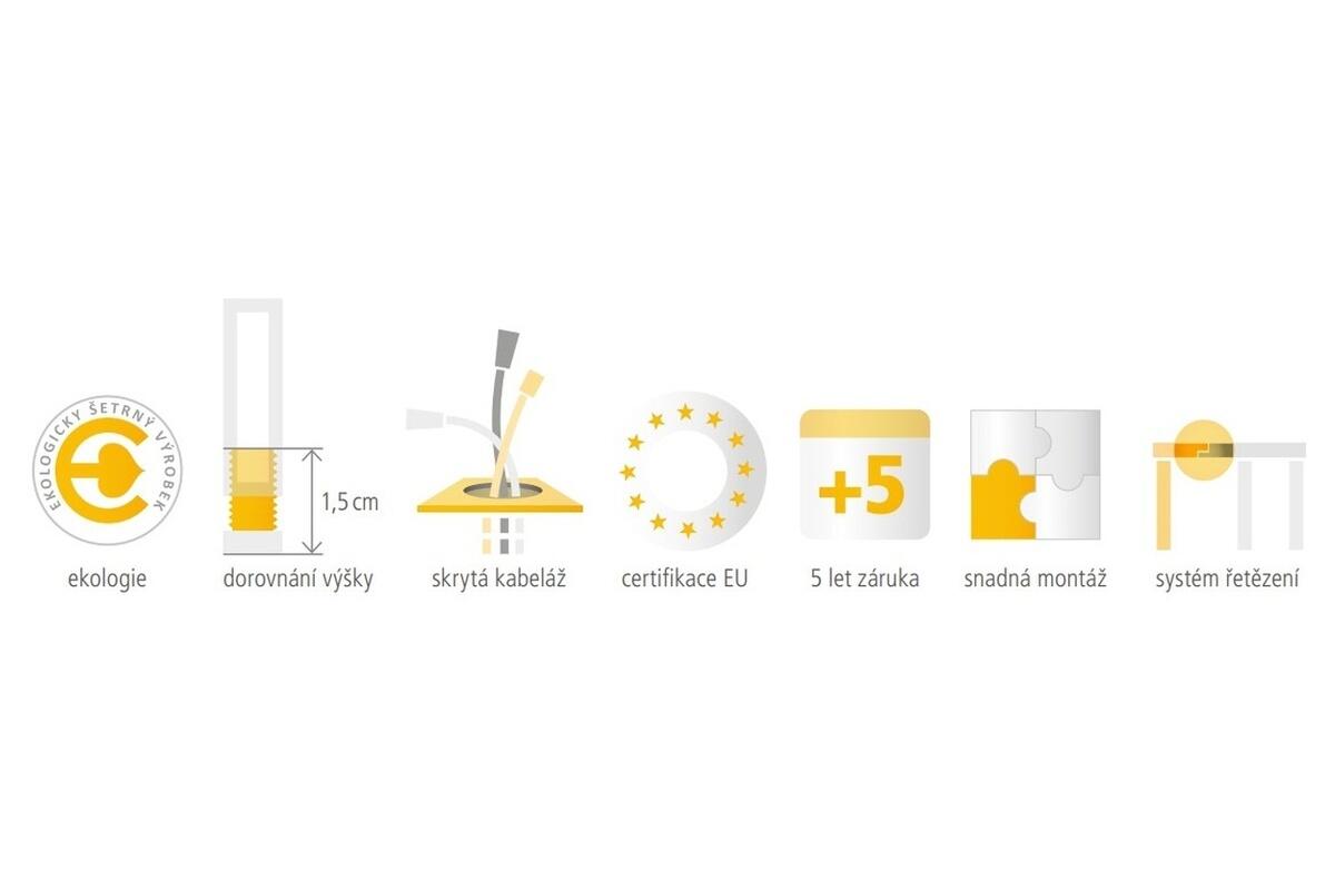 - průchodkou lze svést kabely pod pracovní desku, kde si s nimi poradí chytře zkonstuované držáky
