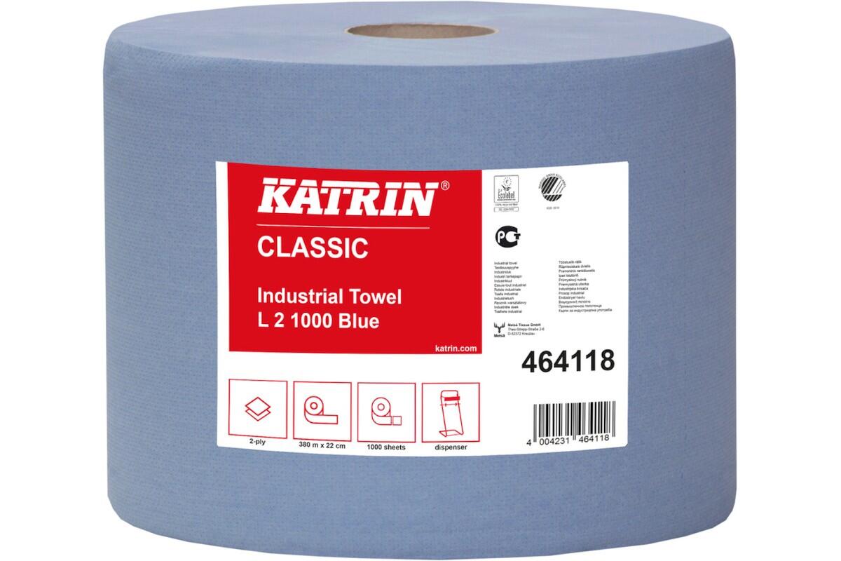 Utěrka papírová na roli Katrin, 2vrstvá, průmyslová, recykl, ø 29 cm, 360 m, 2 ks, modrá (464118)