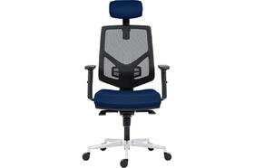 Židle kancelářská Skill 1750-SYN, hlavová opěrka, výškově stavitelný opěrák, područky BR16, posuv sedáku, kříž hliníkový, opěrák černá síť BI5005, sedák a opěrka modrá BN23