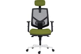 Židle kancelářská Skill 1750-SYN, hlavová opěrka, výškově stavitelný opěrák, područky BR16, posuv sedáku, kříž hliníkový, opěrák černá síť BI5005, sedák a opěrka zelená BN13
