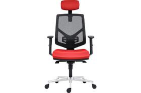 Židle kancelářská Skill 1750-SYN, hlavová opěrka, výškově stavitelný opěrák, područky BR16, posuv sedáku, kříž hliníkový, opěrák černá síť BI5005, sedák a opěrka červená BN14