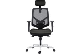 Židle kancelářská Skill 1750-SYN, hlavová opěrka, výškově stavitelný opěrák, područky BR16, posuv sedáku, kříž hliníkový, opěrák černá síť BI5005, sedák a opěrka černá BN7