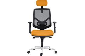 Židle kancelářská Skill 1750-SYN, hlavová opěrka, výškově stavitelný opěrák, područky BR16, posuv sedáku, kříž hliníkový, opěrák černá síť BI5005, sedák a opěrka žlutá BN2