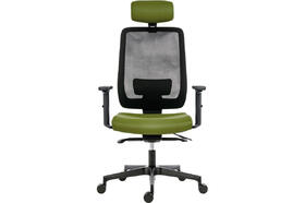 Židle kancelářská Skill 1750-SYN, hlavová opěrka, výškově stavitelný opěrák, područky BR16, posuv sedáku, kříž hliníkový, opěrák černá síť BI5005, sedák a opěrka zelená BN13