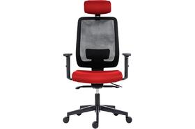 Židle kancelářská Skill 1750-SYN, hlavová opěrka, výškově stavitelný opěrák, područky BR16, posuv sedáku, kříž hliníkový, opěrák černá síť BI5005, sedák a opěrka červená BN14