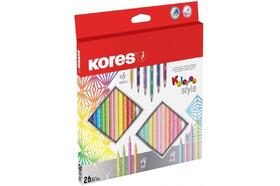Pastelky Kores Kolores Style, trojhranné, 26 ks, obsahuje 4 pastelové, 4 neonové a 6 metalických barev