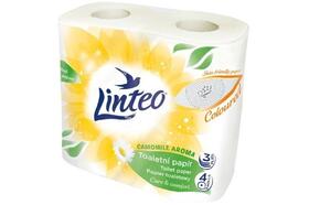 Papír toaletní Linteo, 3vrstvý, celulóza, 16 m, 140 útržků, heřmánek, 4 ks, bílý