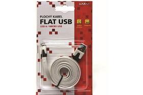 Kabel Logo, USB 2.0, USB A M, USB micro M, plochý, 1 m, bílý