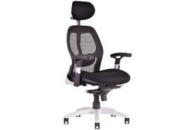 Židle kancelářská Saturn, hlavová opěrka, bederní opěrka, opěrák síť, područky, černá