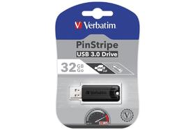 USB Flash disk Verbatim PinStripe, 32 GB, USB 3.0, USB A, s výsuvným konektorem, černý