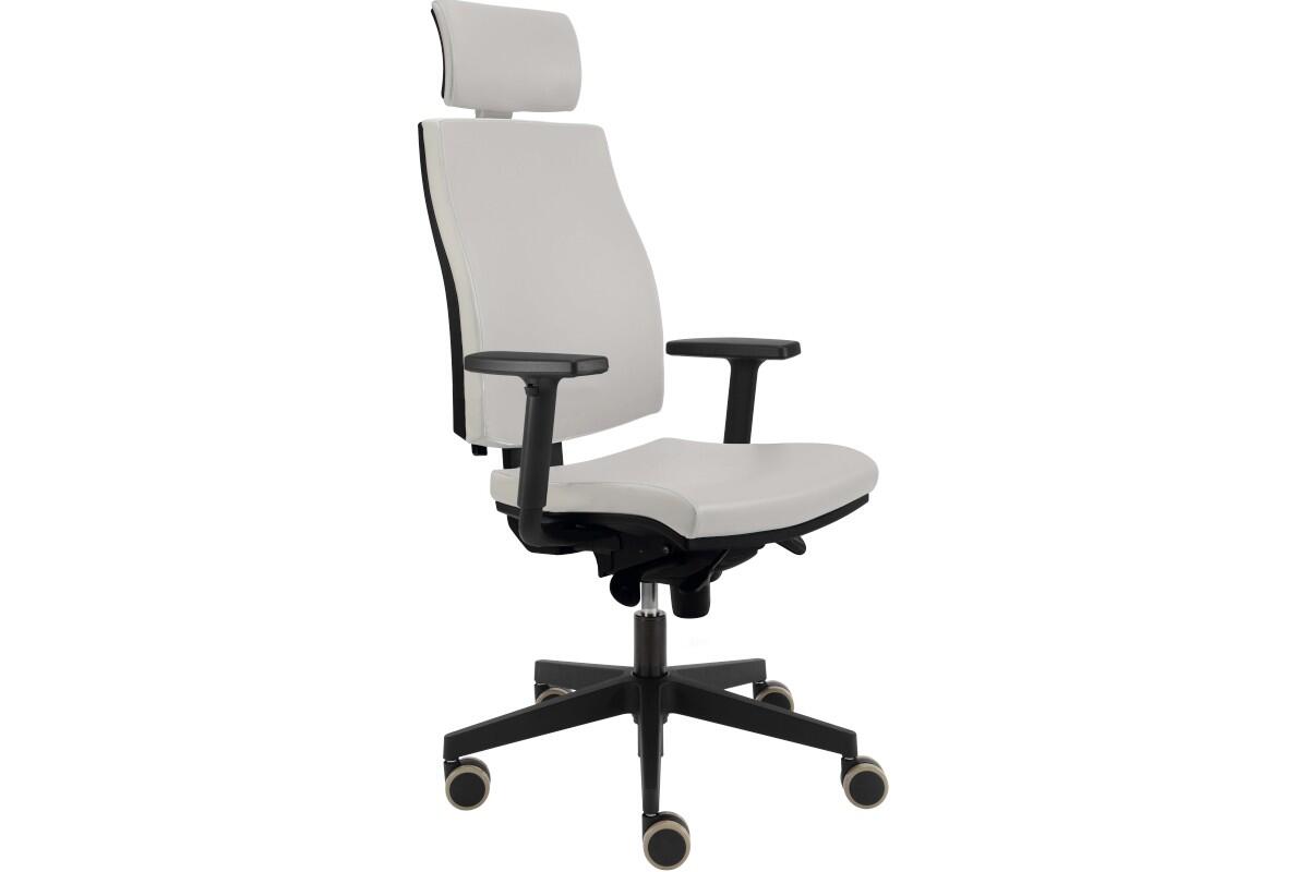 Židle kancelářská Job, T-SYNCHRO, hlavová opěrka 3D, výškově stavitelný opěrák, područky P54, posuv sedáku, kříž černý Loop 640 mm, kolečka pogumovaná, koženka 080 bílá