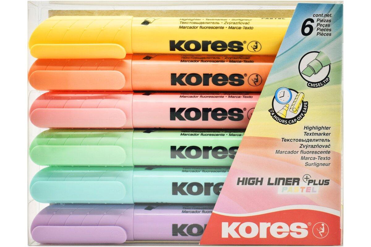 Zvýrazňovač Kores High Liner Pastel, 0,5-3,5 mm, klínový hrot, sada 6 ks